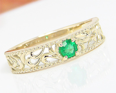 エメラルド リング K10YG アラベスク スカシ ミル打ちの通販は