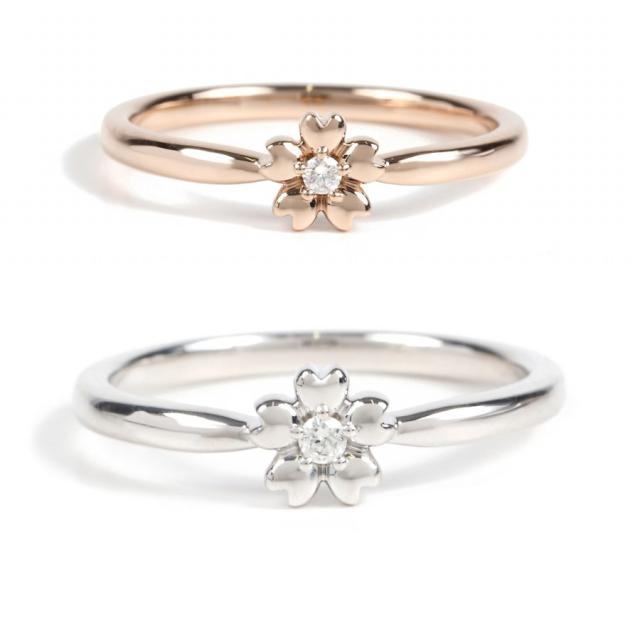 K18 18金 0.02ct ダイヤモンドリング サクラ 桜デザイン(ホワイトゴールド)(9号)(11号)(13号)の通販は