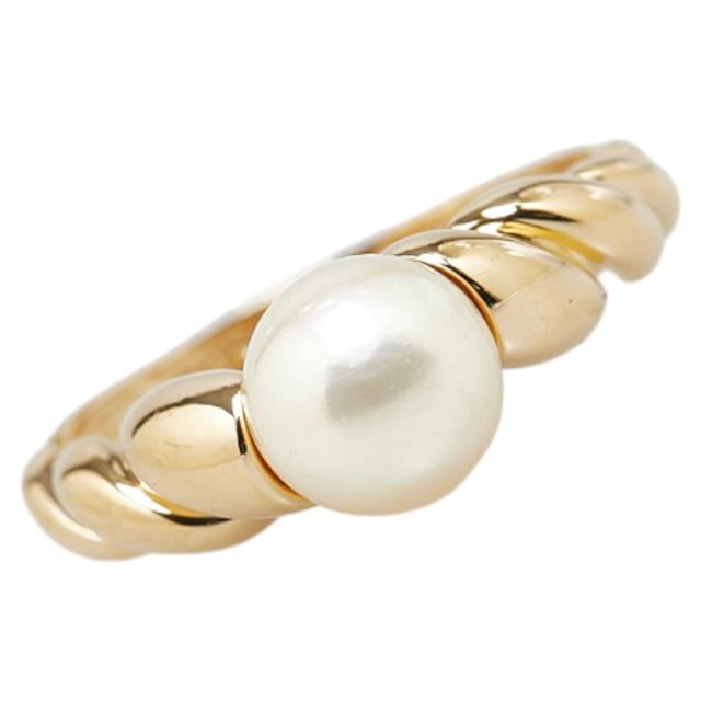 K18YG イエローゴールド アコヤパール6.9mm トルネード リング 指輪 #51 レディース 10.5号 中古の通販は