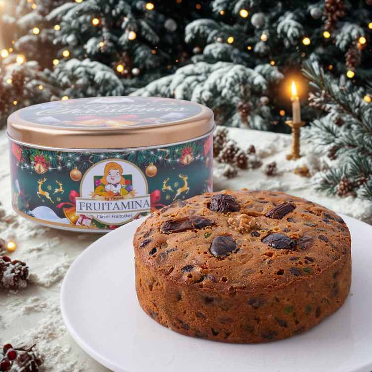 เค้กเนื้อแน่น หอมเนยแท้ ผสมผลไม้อบแห้งนำเข้า หมักบ่มกับเครื่องเทศสูตรเฉพาะ